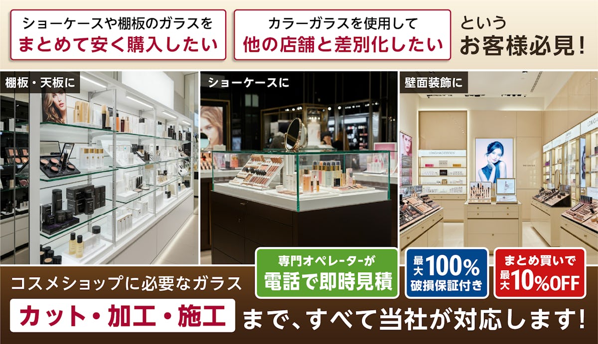 また、透明なので、棚板をたくさん入れても圧迫感がなく、どんな雰囲気の店舗にも合わせやすいので、店舗ではテーブル天板や棚板として多く採用されています。