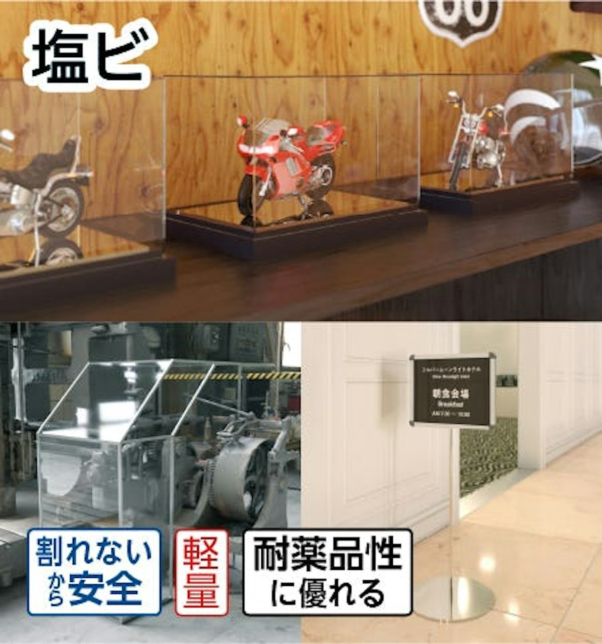 アクリル・樹脂 ガラスよりも割れにくく、軽い