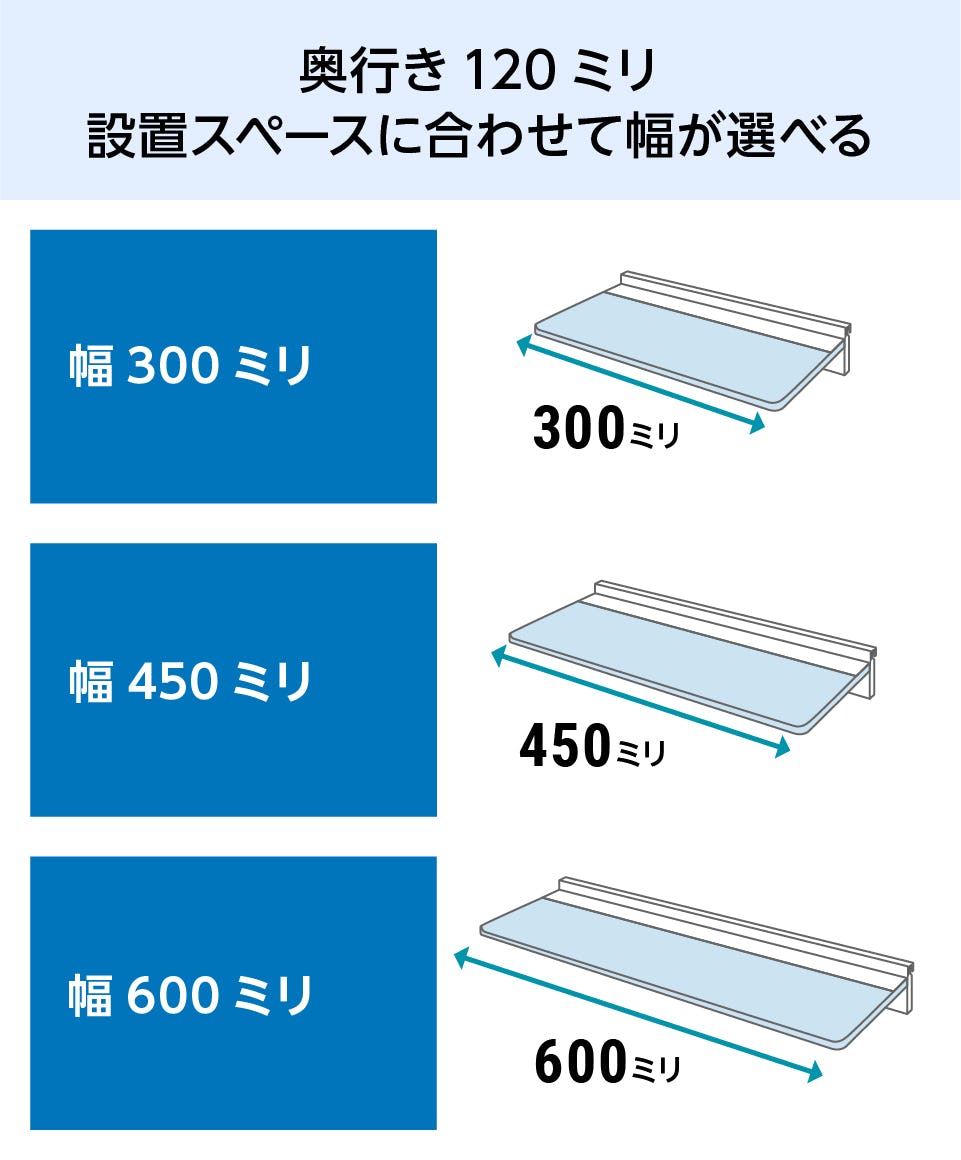幅300ミリ×奥行き120ミリ 幅450ミリ×奥行き120ミリ 幅600ミリ×奥行き120ミリ |