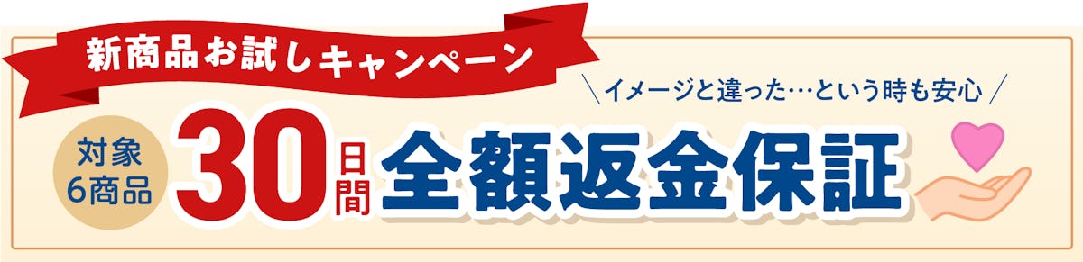 対象商品をお届け後、30日以内であればご使用後でも返品・全額返金に対応いたします。 「買ってみたいけどイメージに合うか不安」という方も、ぜひこの機会にお試しください!