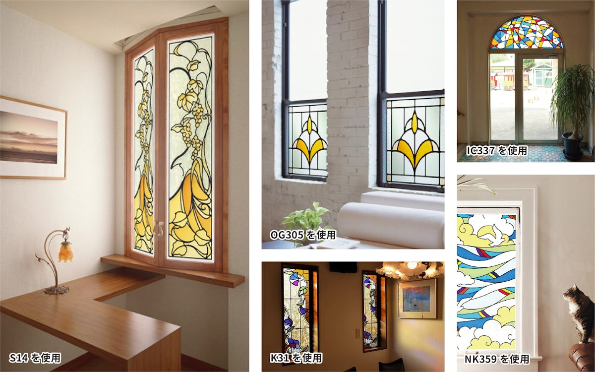 植物をモチーフにしたステンドグラスやシンプルな色・柄のステンドグラスなどは、一般住宅に取り入れても目立ちすぎないため、よく室内窓に採用されています。