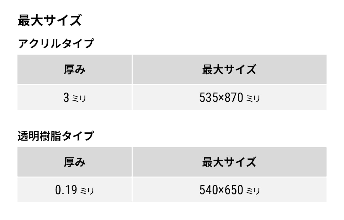 サイズオーダー規格9サイズ枚数割引会員割引安心保証即日発送大口注文対応加工対応サンプル無料割れない超軽量