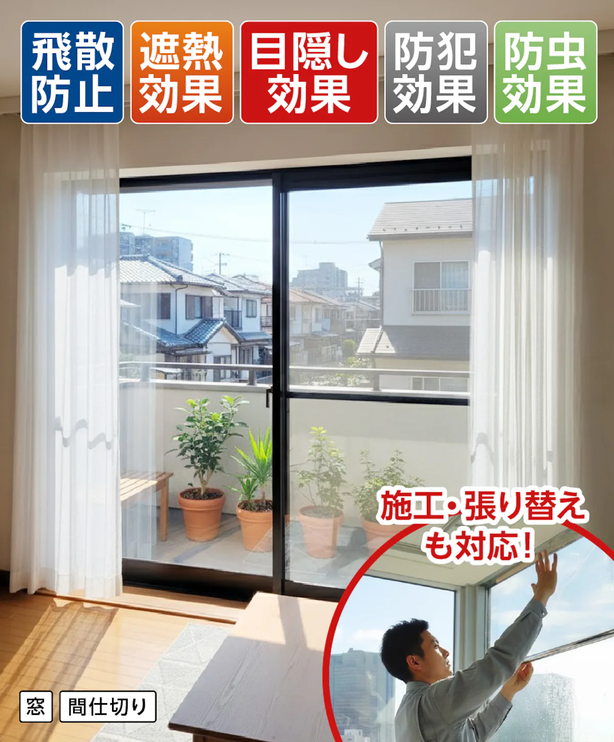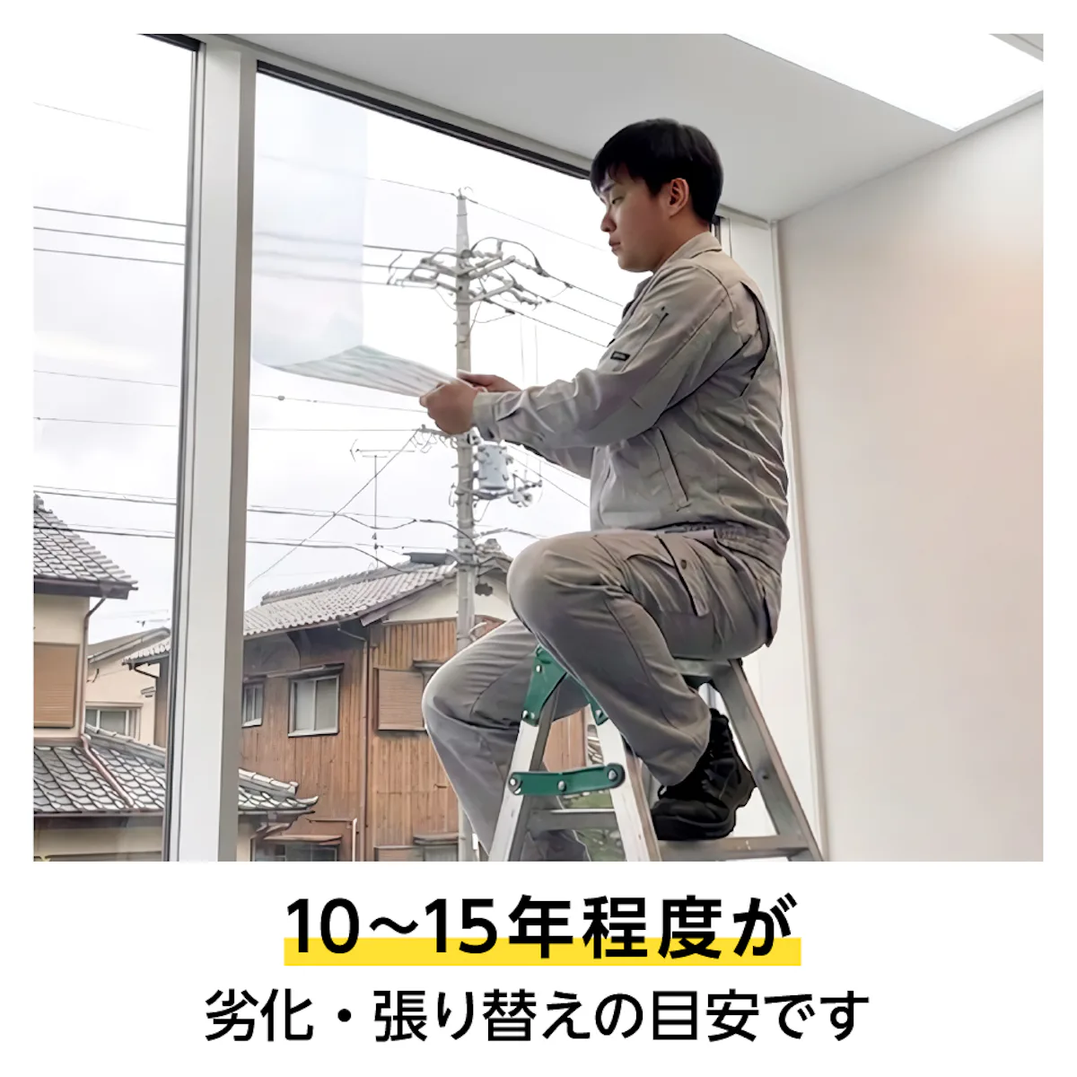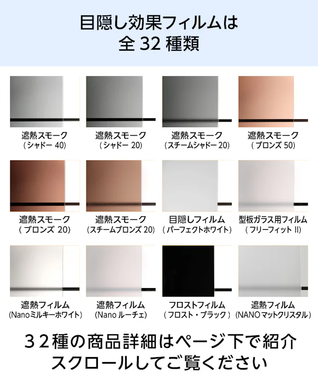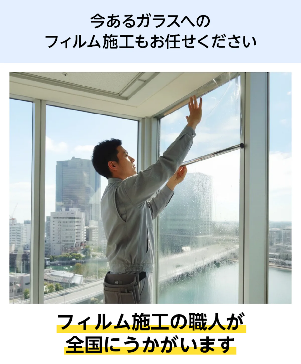 フィルムのみの販売、既存ガラスへの施工や、劣化したフィルムの張り替えにも対応していますので、お電話・お見積フォームからお気軽にご相談ください。