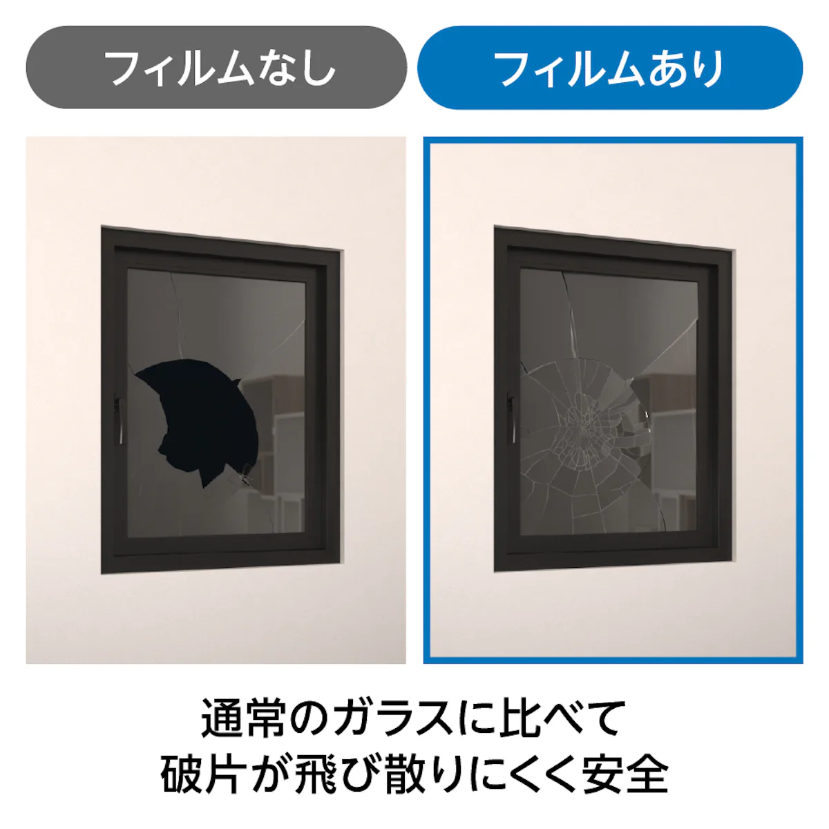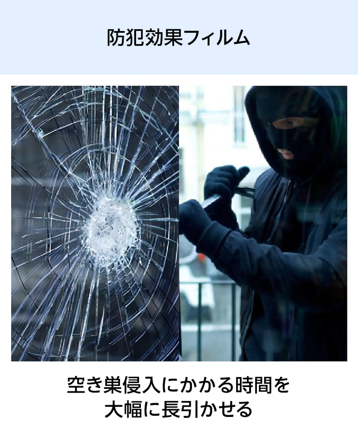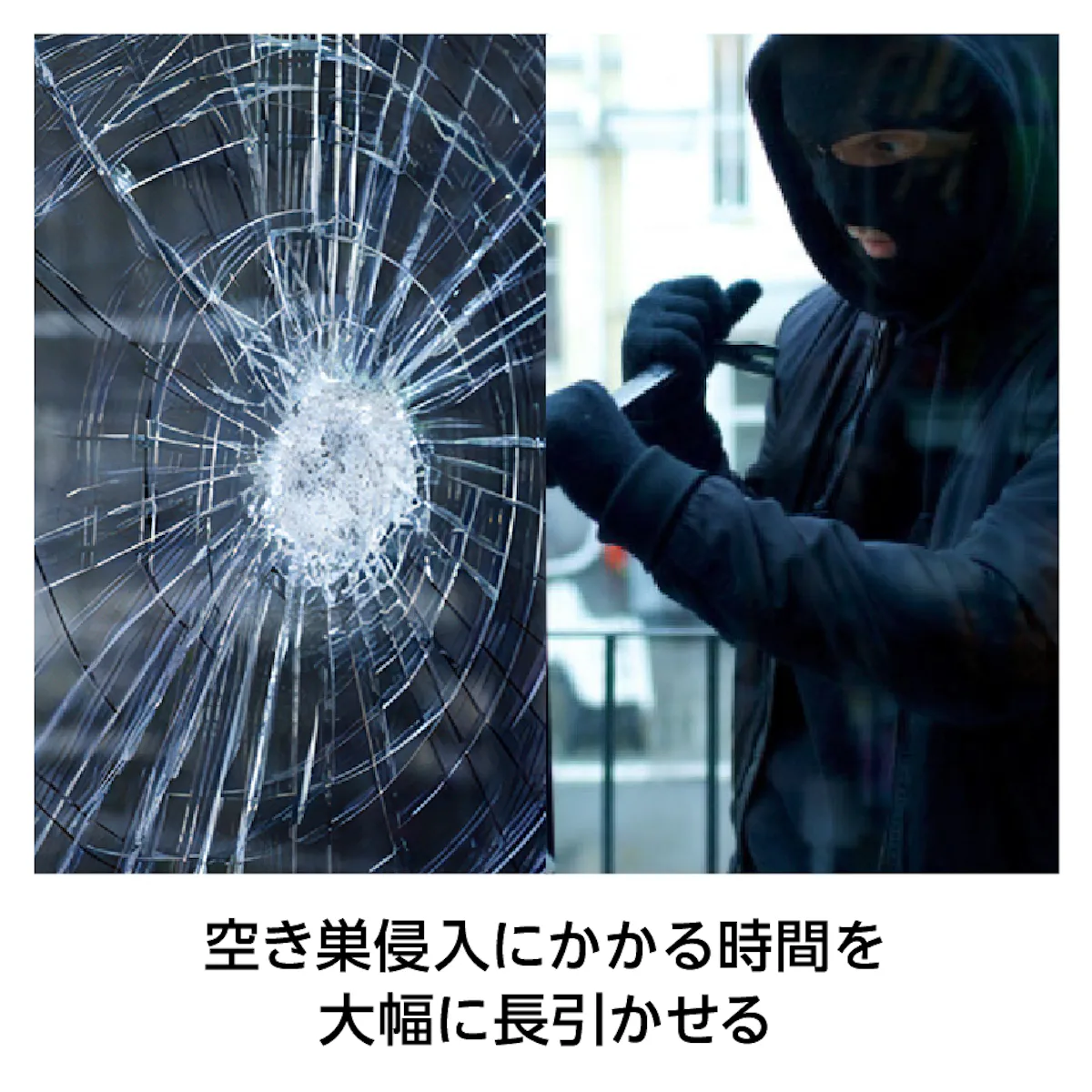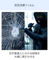 中でも防犯フィルムは割れても貫通しにくく、侵入にかかる時間を長引かせることができることから、空き巣対策として特に多く採用いただいています。