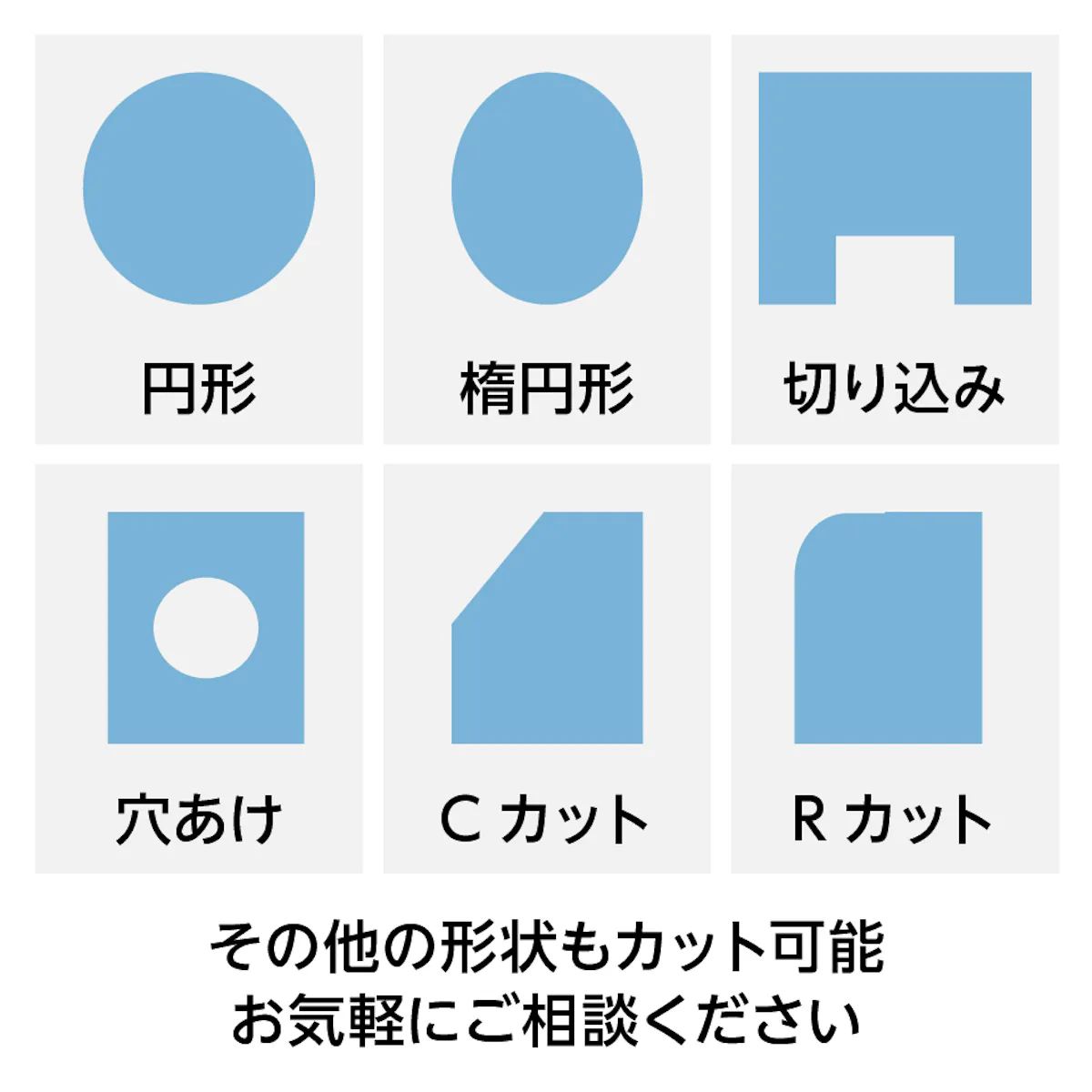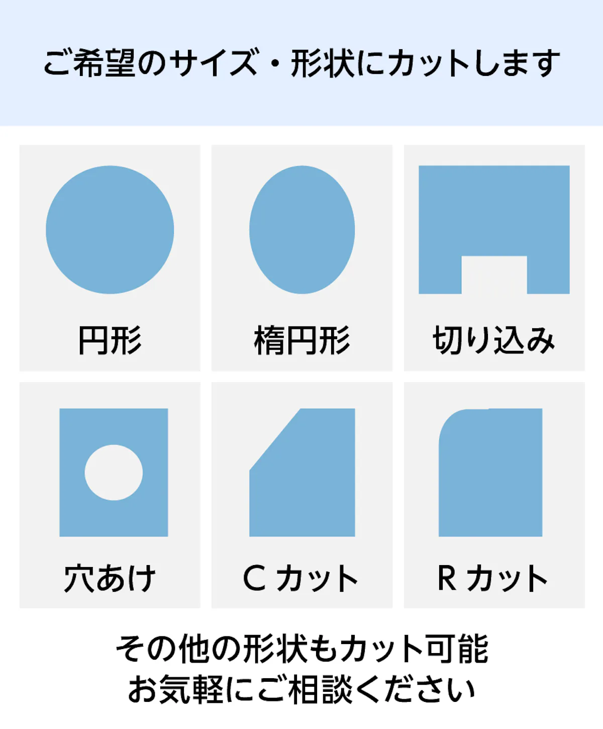 サイズオーダー枚数割引会員割引安心保証大口注文対応加工対応屋外OK施工手配