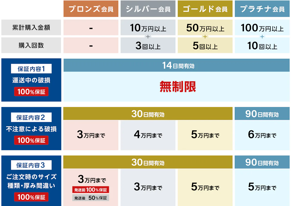 ご購入いただくほどに保証が充実