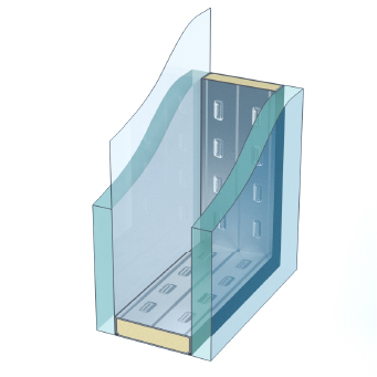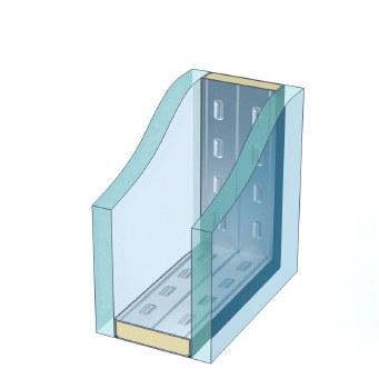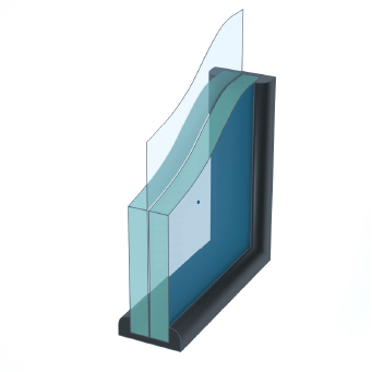 目隠し効果のある型板ガラスと、遮熱・断熱効果のあるLow-Eペアガラスを組み合わせたガラスです。